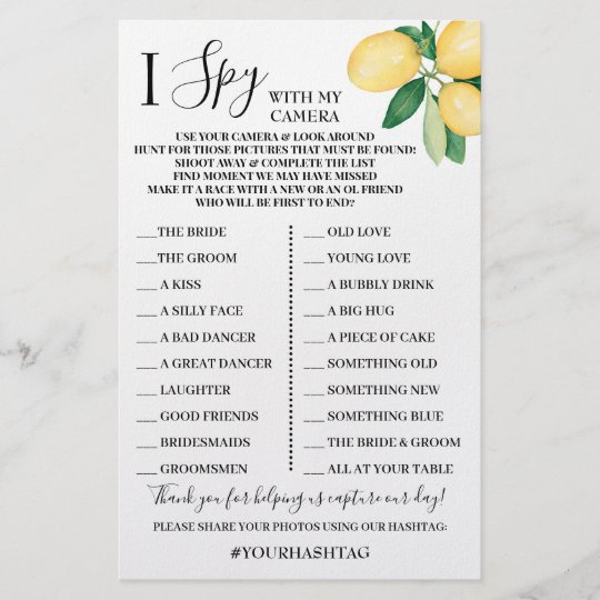 I Spy結婚式のレセプションシャワーレモンゲームカード チラシ Zazzle Co Jp